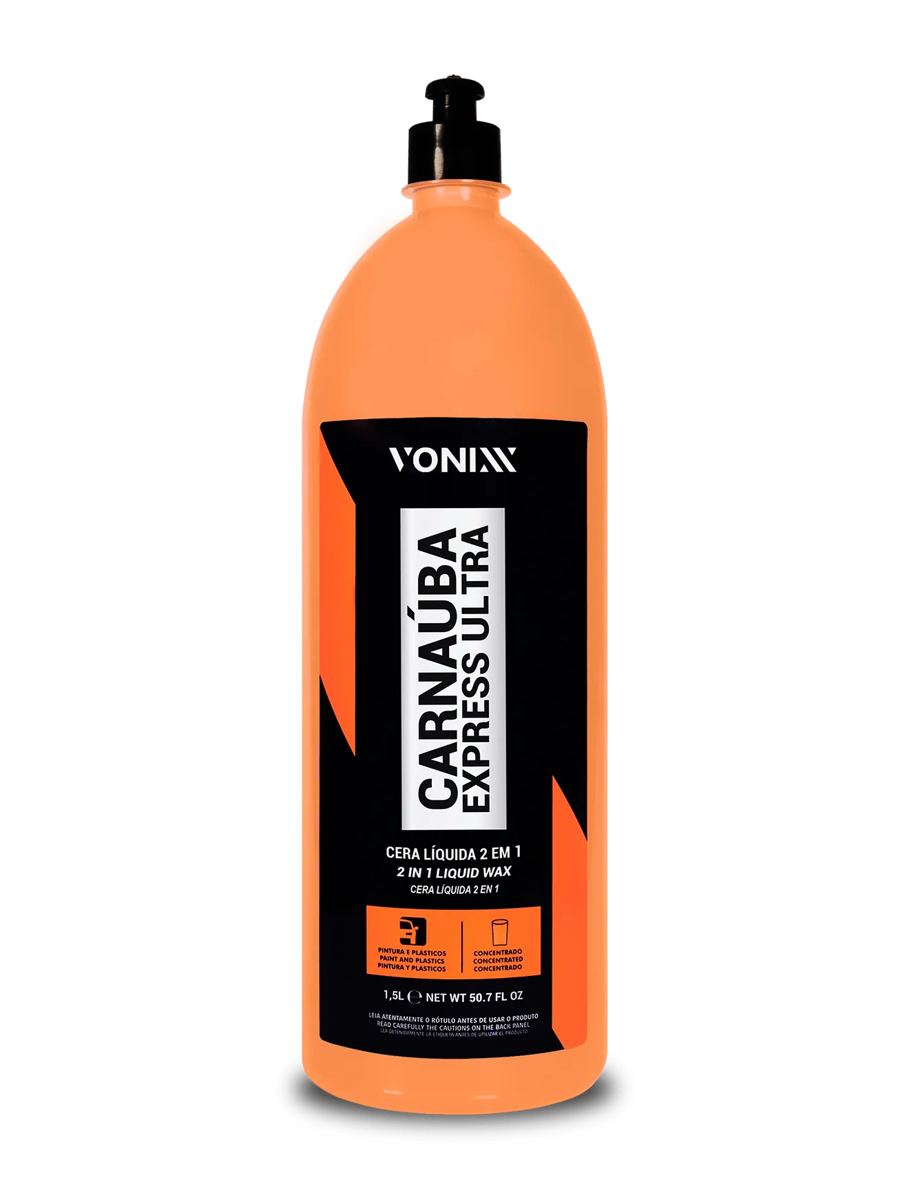 CARNAÚBA EXPRESS ULTRA é um produto versátil, ideal para enceramento da pintura e cuidados básicos com os plásticos. Sua fórmula contém carnaúba tipo 1 e promove excelente acabamento, toque aveludado e brilho à pintura. Nos plásticos internos e externos age na renovação do material. O produto pode ser utilizado em toda a superfície veicular, incluindo vidros, plásticos, rodas, etc. Nos plásticos, proporciona acabamento fosco ou acetinado, a depender da diluição. Rendimento: até 75L de cera pronta para uso.