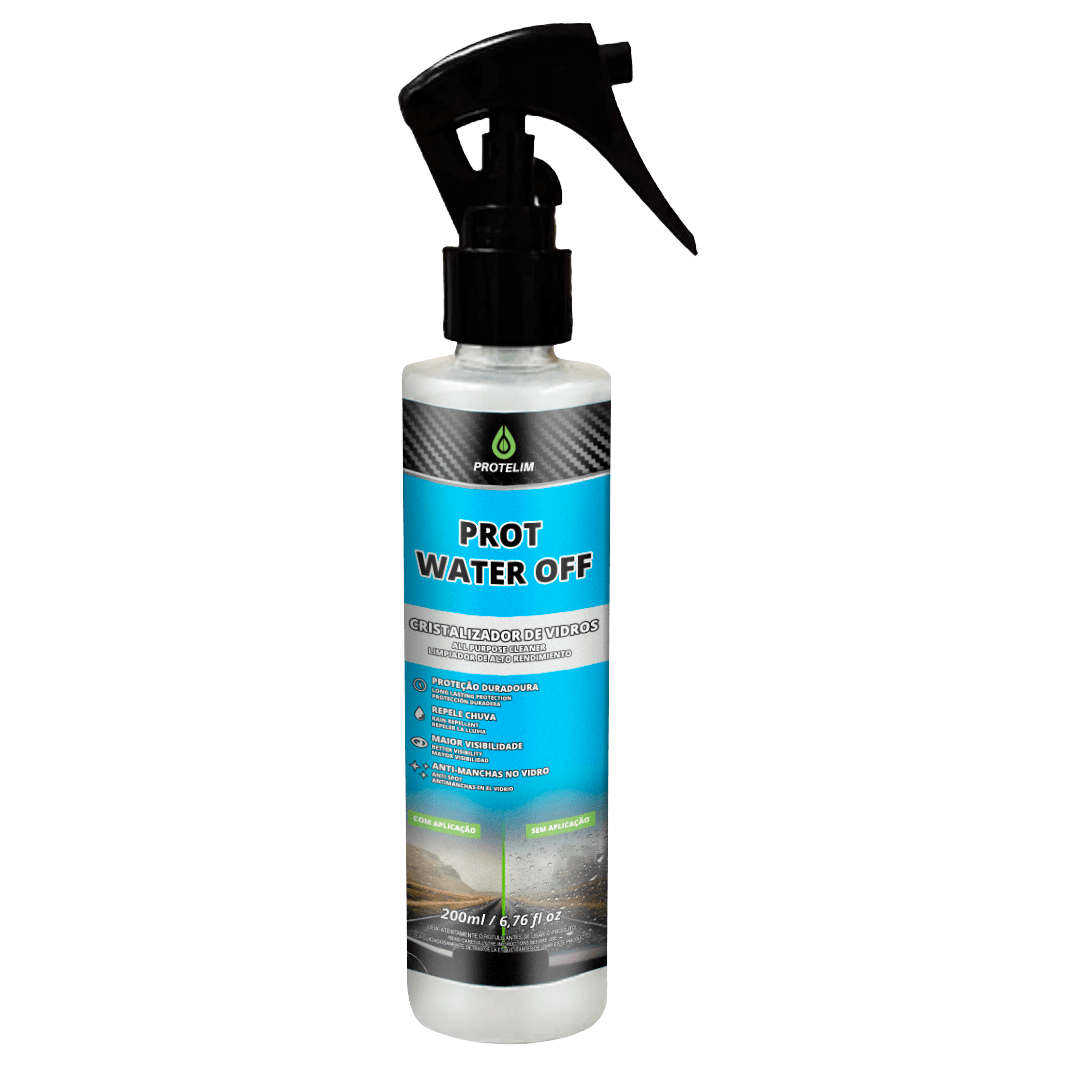 PROT WATER OFF é um cristalizador de vidros em geral. Sua fórmula inovadora à base de água cria uma película invisível sobre o vidro.